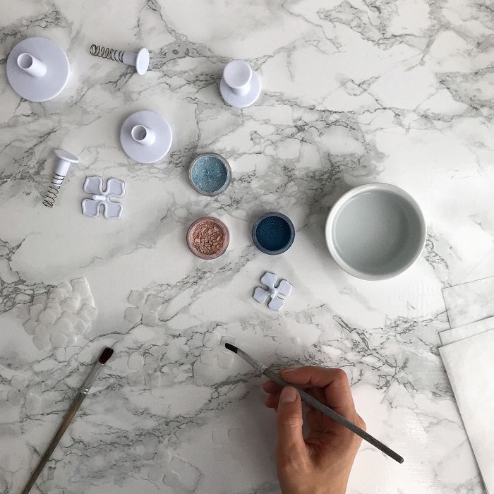 Цветочная пыльца в отличие от обычных сухих красителей имеет максимально мелкий помол. С ней невероятно удобно работать. Особенно при изготовлении цветов. Именно с её помощью можно добиться плавного перехода цвета. Помимо базовых оттенков вы можете смешивать красители между собой. Или же добавить в пыльцу диоксид титана и получить цвет на тон светлее.