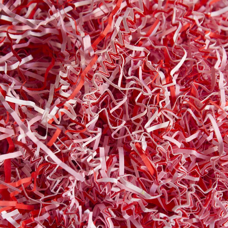 Доставка Бумажный наполнитель для упаковки Микс розово-красный 2 мм 50 г из магазина в вашем городе: