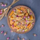 - разложите лепестки на дне кастрюли в 2-3 слоя, залейте их водой, чтобы она покрыла лепестки;