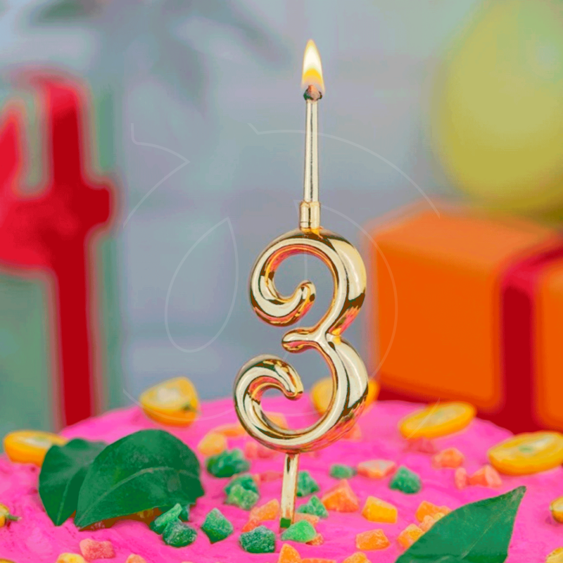 Доставка Свеча декоративная Цифра "3" Золотая из магазина в вашем городе:
