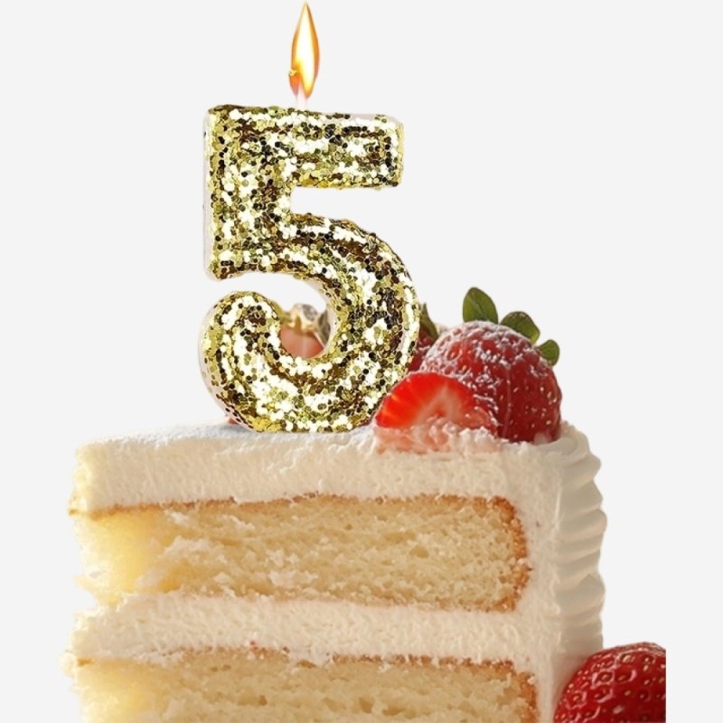 Доставка Свеча декоративная Цифра "5" Золотые пайетки из магазина в вашем городе: