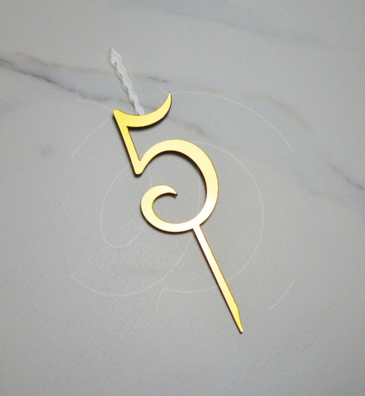 Свеча-топпер декоративная акриловая Цифра "5" Золото