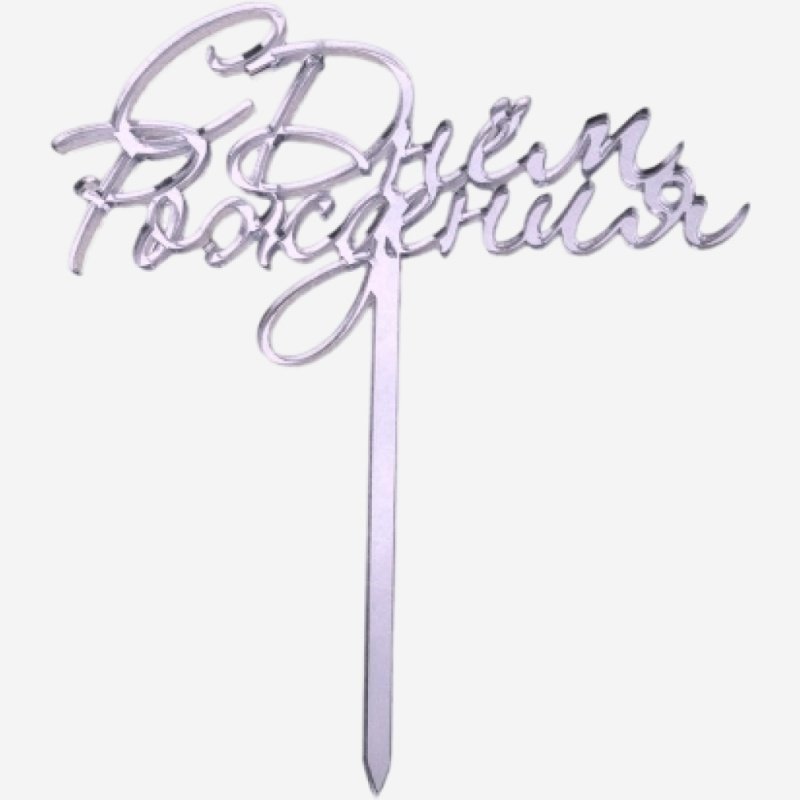 Доставка Топпер декоративный акриловый "С Днём Рождения" Серебро из магазина в вашем городе: