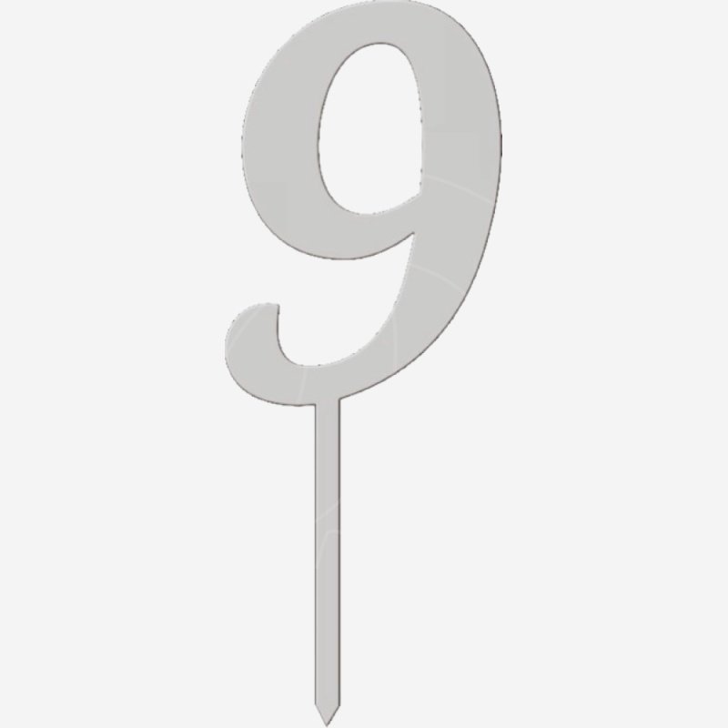 Доставка Топпер декоративный акриловый "Цифра 9 на палочке" Серебро 5 см из магазина в вашем городе: