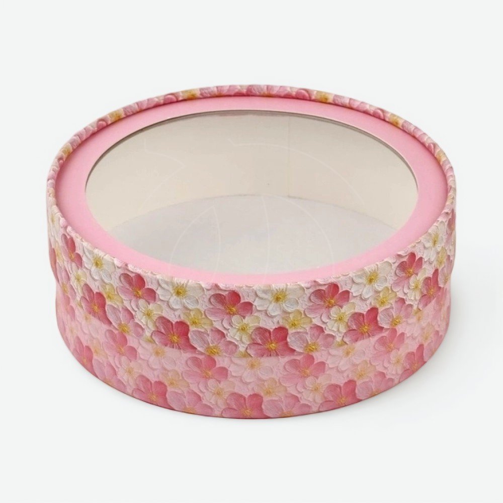 Доставка Коробка для сладостей круглая с окном "Цветы" 16х5 см из магазина в вашем городе: