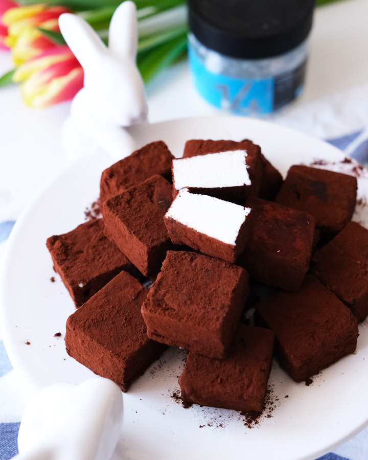 6. Поставьте форму на силиконовый коврик. Переложите массу в форму и оставьте стабилизироваться при комнатной температуре 2-3 часа. После этого разрежьте на кубики.