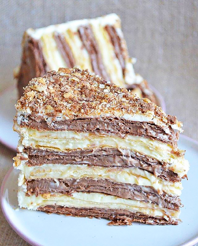 2. Затем классический корж и классический крем также в 2 слоя. Продолжайте собирать торт пока не закончатся коржи и крем.